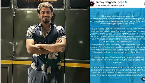 ദുല്ഖര് സല്മാന് നായകനായ ഐആം ഗെയിം എന്ന ചിത്രത്തിന്റെ ഷൂട്ടിന് ശേഷം കൊച്ചിയിലേക്ക് മടങ്ങുകയായിരുന്നു നടന്. ഇന്ഡിഗോ വിമാനത്തിലായിരുന്നുവെന്നും നടന് പോസ്റ്റില് പറയുന്നുണ്ട്. എല്ലാവരും ഭയപ്പെട്ടു പോകുമായിരുന്ന ഒരു സാഹചര്യത്തെ പൈലറ്റും ക്യാബിന് ക്രൂവും എന്ത് മനോഹരമായാണ് കൈകാര്യം ചെയ്തത് എന്നും നടന് പറയുന്നു.