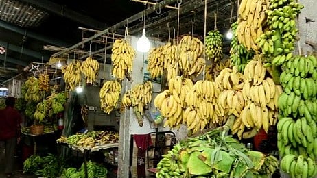 ഇത്തവണയും ഓണ വിപണിക്കായി വാഴക്കുലകൾ എത്തിയത് തമിഴ്നാട്ടിൽ നിന്നാണ്. ഉപ്പേരിക്കുള്ള നേന്ത്രക്കായ കൂടുതലും എത്തുന്നത് പാലക്കാട് നിന്നാണ്. പുലർച്ചെ 2 മണിയോടെ എത്തുന്ന കുലകൾ ഉച്ചയോടെ വിറ്റ് തീരും. ഹോട്ടൽ, കാറ്ററിംഗ് ഉടമകളും മറ്റ് ആവശ്യക്കാരും എത്തുന്നതോടെ കച്ചവടം പൊടി പൊടിക്കുകയാണ്.