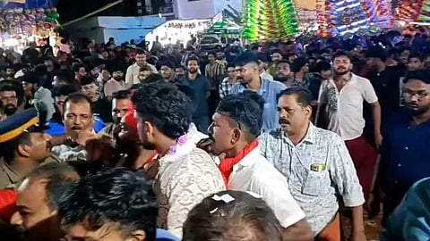 എരവിമംഗലം ക്ഷേത്രത്തിലെ ഷഷ്ഠി ആഘോഷത്തിനിടെയായിരുന്നു ആക്രമണമുണ്ടായത്. എസ്എഫ്ഐ മുൻ ഏരിയ സെക്രട്ടറിയും സിപിഎം ചിറ്റിശ്ശേരി മുൻ ബ്രാഞ്ച് സെക്രട്ടറിയുമായ അനന്തുവാണ് അക്രമത്തിന് നേതൃത്വം കൊടുത്തത്. സംഭവവുമായി ബന്ധപ്പെട്ട് അനന്തുവിനെ കസ്റ്റഡിയിലെടുത്തിട്ടുണ്ട്.
