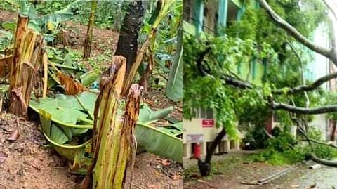 സംസ്ഥാനത്ത് കാലാവർഷമെത്തിയതോടെ വിവിധ ജില്ലകളിൽ കാറ്റിലും മഴയിലും വ്യാപക നാശനഷ്ടം റിപ്പോർട്ട് ചെയ്തു. കൊല്ലം പുനലൂരിൽ കാറ്റിലും മഴയിലും കൃഷി നാശം റിപ്പോർട്ട് ചെയ്തിട്ടുണ്ട്. കോട്ടവട്ടം സ്വദേശി മുരളീധരന്റെ അമ്പതോളം വാഴകളാണ് ഒടിഞ്ഞുവീണത്. സമീപത്തെ കൃഷിയിടങ്ങളിലും നാശം സംഭവിച്ചിട്ടുണ്ട്. ജില്ലയുടെ കിഴക്കൻ മലയോര മേഖലയിൽ ഇടവിട്ട് മഴ ശക്തമാണ്.
