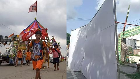 കന്വാര് യാത്ര കടന്നു പോകുന്ന ഉത്തരാഖണ്ഡിലെ ഹരിദ്വാറിൽ മുസ്ലീം പള്ളികൾ കാണുന്ന ഭാഗം വലിയ വെള്ള ഷീറ്റുകള് ഉപയോഗിച്ച് മറച്ചു. വെള്ളിയാഴ്ച രാവിലെയാണ് സംഭവം. എന്നാല് വൈകുന്നേരത്തോടെ ജില്ലാ ഭരണകൂടം ഷീറ്റുകള് നീക്കി. അബദ്ധത്തില് സംഭവിച്ചതാണെന്നും അത്തരത്തില് തുണി കെട്ടി മറയ്ക്കാന് പൊലീസിന്റെ ഭാഗത്ത് നിന്ന് ഉത്തരവുകളൊന്നും തന്നെ വന്നിട്ടില്ലെന്നുമാണ് പൊലീസ് വാദം.