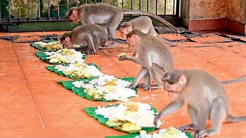 കൊല്ലം ശാസ്താംകോട്ടയിലെ വാനരന്മാര്ക്ക് ഓണക്കാലം കുശാലാണ്. ശാസ്താംകോട്ട ക്ഷേത്രത്തിലെത്തുന്ന ഭക്തര് വിഭവ സമൃദ്ധമായ സദ്യയാണ് വാനരന്മാര്ക്ക് നല്കുന്നത്. ക്ഷേത്രത്തില് തിരുവോണ സദ്യ കഴിക്കാൻ ഇത്തവണയും നിരവധി വാനരന്മാരാണ് എത്തിയത്.