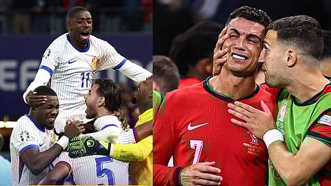 ഷൂട്ടൗട്ട് വരെ നീണ്ട പോരാട്ടത്തിലാണ് റോണാള്ഡോയുടെ പോര്ച്ചുഗലിനെ കീഴടക്കി ഫ്രാന്സ് യൂറോ കപ്പ് സെമി ബെര്ത്ത് ഉറപ്പിച്ചത്. അവസാന യൂറോപ്യന് ചാമ്പ്യന്ഷിപ്പ് മത്സരം കളിക്കാനിറങ്ങിയ പോര്ച്ചുഗല് താരം റോണാള്ഡോയ്ക്ക് കണ്ണീരോടെ മടങ്ങാനായിരുന്നു വിധി. ഷൂട്ടൗട്ടില് മൂന്നിനെതിരെ അഞ്ച് ഗോളുകള്ക്കായിരുന്നു ഫ്രാന്സിന്റെ വിജയം. ഫുള് ടൈമിലും എക്സ്ട്രാ ടൈമിലും ഇരുടീമുകളും ഗോള്വല കുലുക്കാന് കിണഞ്ഞ് പരിശ്രമിച്ചെങ്കിലും ഗോള് മാത്രം അകന്നു നിന്നു. ഇതോടെ മത്സരം ഷൂട്ടൗട്ടിലേക്ക് കടന്നു. പോർച്ചുഗൽ താരം ജോവ ഫെലിക്സ് കിക്ക് പാഴാക്കിയപ്പോൾ ഫ്രാൻസിന്റെ 5 കിക്കുകളും ലക്ഷ്യത്തിലെത്തി (5–3). 9ന് രാത്രി 12.30ന് നടക്കുന്ന സെമിയിൽ സ്പെയിനാണ് ഫ്രാൻസിന്റെ എതിരാളികൾ.