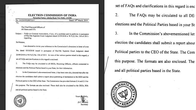 ഇലക്ഷൻ കമ്മീഷൻ ഓഫ് ഇന്ത്യയേയും ബിജെപിയേയും നിയന്ത്രിക്കുന്നത് ഒരേ ഓഫീസ് തന്നെയാണെന്ന് പരസ്യമായി അറിയുന്ന കാര്യം.എങ്കിലും കത്തിടപാടിന് രണ്ടു മേശ ഇടണം! സീൽ അങ്ങോട്ടും ഇങ്ങോട്ടും മാറിപ്പോകുന്നു. തെരഞ്ഞെടുപ്പ് കമ്മീഷന്റെ കത്തിൽ ബിജെപിയുടെ സീൽ!