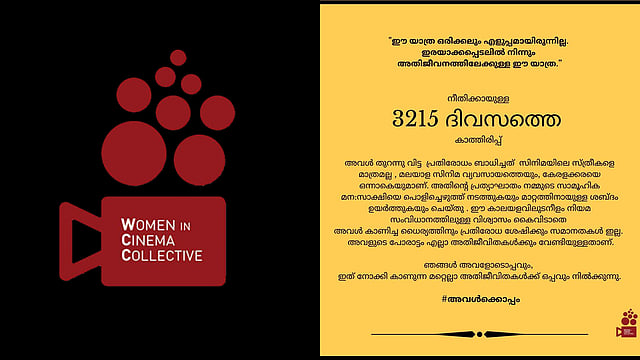 "നീതിക്കായുള്ള 3215 ദിവസത്തെ കാത്തിരിപ്പ്, #അവൾക്കൊപ്പം"; പോസ്റ്റ് പങ്കുവച്ച് ഡബ്ല്യൂ.സി.സി