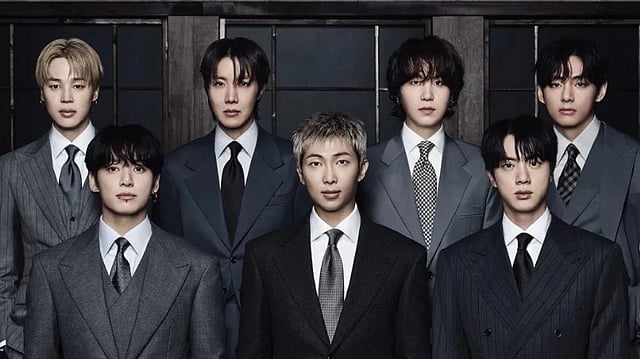 2013ലാണ് ഏഴംഗ കെ പോപ് ബാൻഡായ ബിടിഎസ് രൂപീകരിക്കുന്നത്. ആർ.എം, ജിൻ, സൂഗ, ജെ-ഹോപ്പ്, ജിമിൻ, വി, ജങ്‌കുക്ക് എന്നിവരാണ് ബാൻഡിലെ അംഗങ്ങൾ. ചുരുങ്ങിയ കാലം കൊണ്ട് ആഗോളതലത്തിൽ ശ്രദ്ധിക്കപ്പെട്ട ബാൻഡ് 2022 ജൂണിൽ താൽക്കാലികമായി പിരിയുകയായിരുന്നു. ബാൻഡംഗങ്ങൾക്ക് ദക്ഷിണകൊറിയയിലെ നിർബന്ധിത സൈനികസേവനം പൂർത്തിയാക്കുന്നതിനായിട്ടായിരുന്നു ഈ തീരുമാനം.