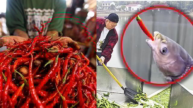 തെക്കൻ ചൈനയിലെ ഒരു മീൻകുളത്തിന്റെ ഉടമ എല്ലാ ദിവസവും തന്റെ മീനുകൾക്ക് തീറ്റയായി കൊടുക്കുന്നത് 5,000 കിലോ മുളകാണത്രേ. മുളക് തിന്നാൻ കൊടുക്കുന്നത് മത്സ്യത്തെ കൂടുതൽ പോഷകമുള്ളതാക്കുകയും അവയുടെ രുചി കൂട്ടുകയും ചെയ്യുന്നുവെന്നാണ് മത്സ്യ കർഷകർ പറയുന്നത്. സ്പൈസി ഫുഡ്ഡിന് പേര് കേട്ട സ്ഥലമായ ഹുനാൻ പ്രവിശ്യയിലാണ് ഈ രീതി നടപ്പാക്കുന്നത്.