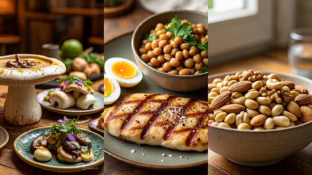 പ്രോട്ടീൻ സമൃദ്ധമായ ഭക്ഷണങ്ങൾ Source; Meta AI