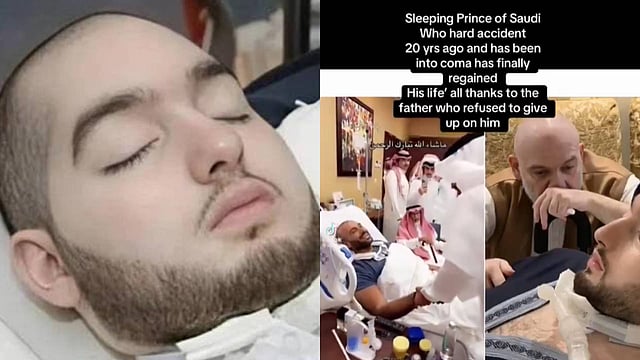 അൽ-വലീദ് ബിൻ ഖാലിദ് ബിൻ തലാൽ കോമയിൽ നിന്ന് ഉണർന്നെന്ന തരത്തിലുള്ള വീഡിയോ പ്രചരിച്ചതിന് പിന്നാലെയാണ് ഉറങ്ങുന്ന രാജകുമാരനെക്കുറിച്ച് ഇൻ്റർനെറ്റ് ലോകം സംസാരം തുടങ്ങിയത്. 20 വർഷങ്ങൾക്ക് മുൻപ്, 2005ൽ ഉണ്ടായ ഒരു വാഹനാപകടത്തോടെ രാജകുമാരൻ്റെ ജീവിതം മാറിമറിയുകയായിരുന്നു. അപകടത്തിൽ ബിൻ ഖാലിദ് ബിൻ തലാലിൻ്റെ തലച്ചോറിന് ഗുരുതരമായ ക്ഷതമേൽക്കുകയും, അദ്ദേഹം കോമയിലാവുകയും ചെയ്തു. 20 വർഷമായിട്ടും ഇയാൾ കണ്ണ് തുറന്നിട്ടില്ല. ഇക്കഴിഞ്ഞ ഏപ്രിലിൽ രാജകുമാരന് 36 വയസ്സ് തികഞ്ഞു. പിന്നാലെയാണ് സൗദിയുടെ ഉറങ്ങുന്ന രാജകുമാരൻ ഉണർന്നു എന്നതരത്തിൽ വീഡിയോ പ്രചരിച്ചത്.