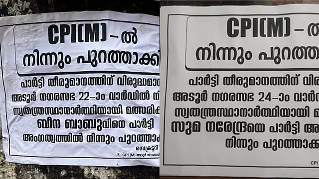 സിപിഐഎം ഏരിയ ജില്ലാ നേതൃത്വങ്ങൾ ഇടപെട്ടിട്ടും ഇരുവരും സ്ഥാനാർഥിത്വം പിൻവലിക്കാൻ തയ്യാറായിരുന്നില്ല. ഇതേ തുടർന്നാണ് പാർട്ടിയിൽ നിന്നും പുറത്താക്കിയത്.