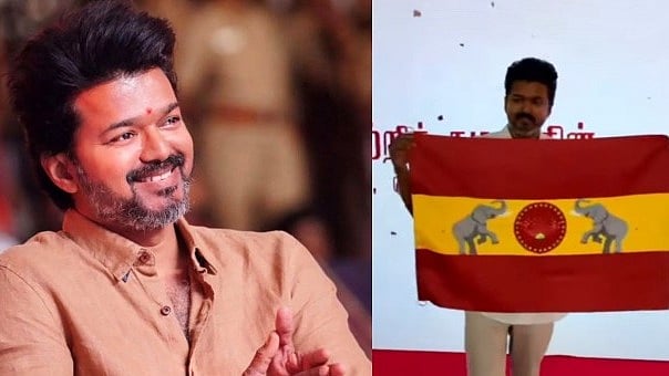 ചുവപ്പും മഞ്ഞയും നിറങ്ങളിൽ ആനയുടെയും വാകപ്പൂവിൻ്റെയും ചിത്രങ്ങളുള്ള മാതൃകയിലാണ് വിജയുടെ തമിഴക വെട്രി കഴകം പാർട്ടിയുടെ പതാക. എസ് തമനാണ് വിജയുടെ പാർട്ടി ഗാനം സംഗീത സംവിധാനം ചെയ്തിരിക്കുന്നത്.