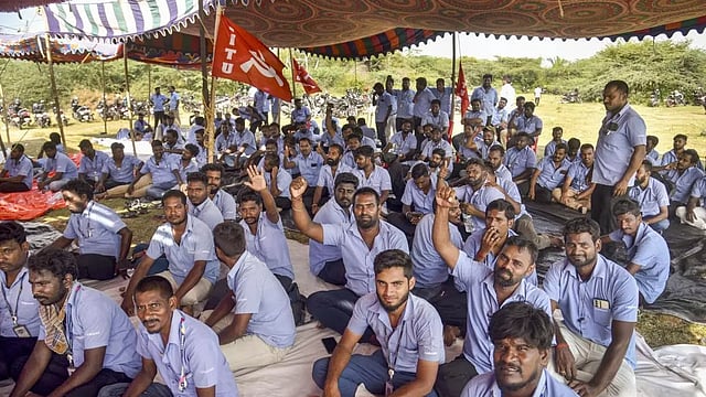 കാഞ്ചീപുരം ജില്ലയിലെ ശ്രീപെരുംപത്തൂരിലുള്ള സാംസങ് ഫാക്ടറിയിൽ സെപ്തംബർ 9നാണ് തൊഴിലാളി സമരം ആരംഭിച്ചത്. ടിവി, ഫ്രിഡ്ജ്, വാഷിങ്മെഷീൻ എന്നിവ നിർമിക്കുന്ന ഫാക്ടറിയിൽ വേതനവർധന, തൊഴിൽ സമയം എട്ട് മണിക്കൂറാക്കി ചുരുക്കൽ, അടിസ്ഥാന സൗകര്യങ്ങൾ എന്നീ വിവിധ ആവശ്യങ്ങളുന്നയിച്ചാണ് സമരം. സിഐടിയു നേതൃത്വത്തിൽ സാംസങ് ഇന്ത്യ വർക്കേഴ്സ് യൂണിയൻ രൂപീകരിച്ചെങ്കിലും കമ്പനി എതിർത്തു. യൂണിയനെ അംഗീകരിക്കാനാവില്ലെന്ന് സാംസങ് വ്യക്തമാക്കി. പ്രതിഷേധസമരം കടുത്തു. സമരക്കാരെ പൊലീസ് മർദിച്ചതും കസ്റ്റഡിയിലെടുത്തതും വിമർശനം ക്ഷണിച്ചുവരുത്തി. ഇതോടെ ഇടതുനേതാക്കൾ തൊഴിലാളികളെ പിന്തുണച്ച് വാർത്താസമ്മേളനവും നടത്തി. ഡിഎംകെ മുന്നണിയുടെ ഭാഗമായ വിസികെയുടെ നേതാവ് തോൾ തിരുമാവളവൻ എംപി, സിപിഐഎം സംസ്ഥാന സെക്രട്ടറി കെ. ബാലകൃഷ്ണൻ, സിപിഐ നേതാവ് കെ. മുത്തുരശ് എന്നിവരാണ് വിമർശനം നടത്തിയത്. മാനേജ്മെന്റ് അനുകൂല നിലപാടിൽ നിന്ന് ഡിഎംകെ സർക്കാർ പിന്മാറണമെന്ന് സിഐടിയു ആവശ്യപ്പെട്ടു.