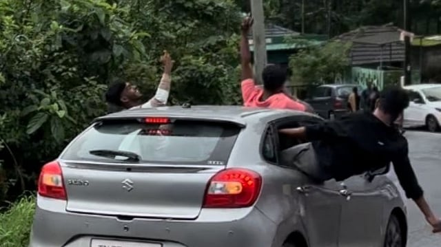 കോഴിക്കോട് കുറ്റ്യാടി ചുരത്തിൽ തിരക്കേറിയ റോഡിൽ കാറിൽ അഭ്യാസ പ്രകടനവുമായി യുവാക്കൾ. കാറിൻ്റെ രണ്ടു ഭാഗത്തെയും വിൻഡോയിലും, ബോണറ്റിലും ഇരുന്നായിരുന്നു യുവാക്കളുടെ അപകടകരമായ യാത്ര. ചുരത്തിലുണ്ടായിരുന്ന ആളുകളാണ് സംഭവത്തിൻ്റെ വീഡിയോ എടുത്തതും വിവരം പൊലീസിനെ അറിയിച്ചതും.