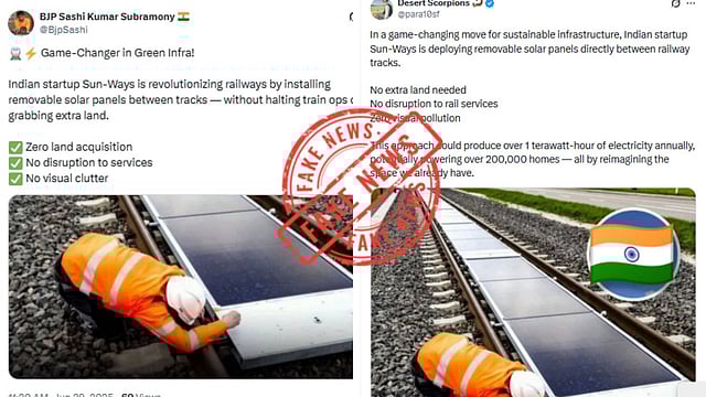 സൺ-വേയ്‌സ് എന്ന ഇന്ത്യൻ സ്റ്റാർട്ടപ്പ് കമ്പനി റെയിൽവേ ട്രാക്കുകൾക്കിടയിൽ നീക്കം ചെയ്യാവുന്ന സോളാർ പാനലുകൾ സ്ഥാപിക്കുമെന്ന് അവകാശപ്പെടുന്ന പോസ്റ്റുകളാണ് സമൂഹ മാധ്യമങ്ങളിൽ വൈറലാകുന്നത്. സുസ്ഥിര അടിസ്ഥാന സൗകര്യങ്ങൾക്കായുള്ള വലിയ മുന്നേറ്റമായിരിക്കും ഇതെന്നും, പദ്ധതി ട്രെയിൻ സർവീസുകൾക്ക് തടസമാകില്ലെന്നും അധിക ഭൂമി ആവശ്യമില്ലെന്നുമാണ് പോസ്റ്റുകളിലെ അവകാശവാദം.