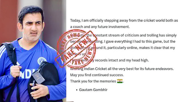 ഇതിനുപിന്നാലെ "പരിശീലക സ്ഥാനം രാജിവയ്ക്കുകയാണെന്നും.. ക്രിക്കറ്റിനോട് വിടപറയുകയാണെന്നും," ഗംഭീർ പ്രഖ്യാപിച്ചുവെന്ന തരത്തിലുള്ള ഒരു കുറിപ്പ് സമൂഹ മാധ്യമങ്ങളിൽ വൈറലാകുന്നുന്നുണ്ട്. തുടർച്ചയായ വിമർശനങ്ങൾ ഇത്തരമൊരു തീരുമാനത്തിലേക്ക് എത്തിച്ചുവെന്ന് ഗംഭീർ പറയുന്നതായാണ് കുറിപ്പിലുള്ളത്. എന്താണ് ഇതിൻ്റെ വസ്തുത?
