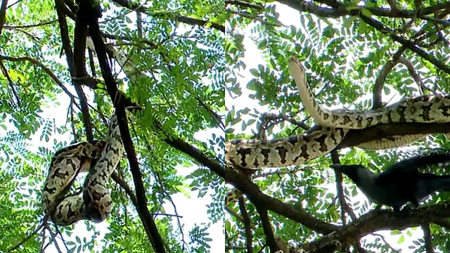 മരത്തിൽ കയറിയ പെരുമ്പാമ്പ് Source: News Malayalam 24x7