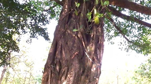 വർഷങ്ങൾക്ക് മുമ്പ് ഇവിടെ ആലും, മാവും, പ്ലാവും നട്ടിരുന്നു.പിന്നീട് മാവ് ഉണങ്ങിപോവുകയും ചെയ്തു. അവശേഷിച്ചത് പ്ലാവും ആൽമരവും മാത്രം. പിന്നീട്ആൽമരത്തിൻ്റെ കരുത്തുറ്റ വേരുകളും തണ്ടുകളും വളർന്ന് പ്ലാവിനെ പൂർണമായി മറച്ചിരിക്കുകയാണെന്നും നാട്ടുകാർ പറഞ്ഞു.ഇതാണ് ആൽമരത്തിലെ ചക്കയുടെ പിന്നിലെ രഹസ്യം.