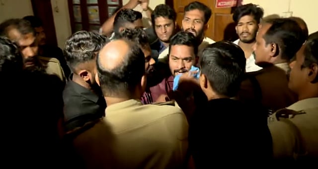 കാവി കൊടിയേന്തിയ ഭാരതാംബയെ വേദിയിൽ വെച്ചതിന് പിന്നാലെയാണ് കേരള സർവകലാശാല ആസ്ഥാനം യുദ്ധക്കളമായത്. സെനറ്റ് ഹാളിൽ ഗവർണർ പങ്കെടുക്കുന്ന സ്വകാര്യ പരിപാടിയിൽ ഭാരതാംബ ചിത്രം വച്ചത് കൂട്ടയടിയിൽ കലാശിച്ചു. ഹാളിനുള്ളിൽ കെഎസ്യു പ്രവർത്തകർക്കും, പോലീസുകാർക്കും ബിജെപിക്കാരുടെ ക്രൂരമർദ്ദനമേറ്റു. എസ്എഫ്ഐക്കാരുടെ നടുവിലൂടെ വന്ന് പരിപാടിയിൽ പങ്കെടുത്ത ഗവർണർ, ആർക്കും വഴങ്ങില്ലെന്ന നിലപാട് ആവർത്തിച്ചു.