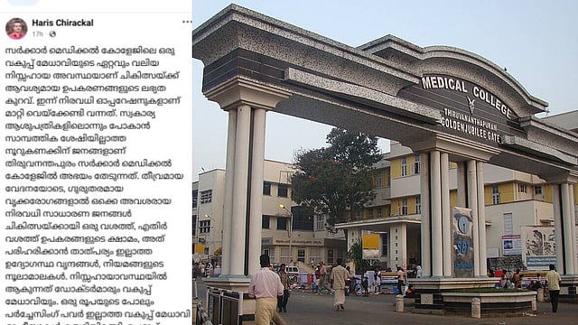 മെഡിക്കൽ കോളേജ് അനാസ്ഥ പരിഹരിക്കാൻ രാഷ്ട്രീയക്കാരോടും ഉദ്യോഗസ്ഥരോടും അപേക്ഷിച്ച് മടുത്തുവെന്നാണ് വകുപ്പ് മേധാവി ഫേസ്ബുക്കിൽ കുറിച്ചത്. ഉപകരണങ്ങൾ എത്തിക്കാൻ പല ഓഫീസുകളിലായി കയറി ഇറങ്ങി മടുത്തു. പിരിച്ചുവിട്ടാലും കുഴപ്പമില്ല എന്നും വകുപ്പ് മേധാവി ഹാരിസ് ചിറക്കൽ ഫേസ്ബുക്കിൽ കുറിച്ചു.