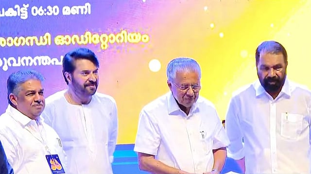 ചടങ്ങിൽ പത്മഭൂഷണ് പുരസ്കാരത്തിന് അർഹമായ നടൻ മമ്മൂട്ടിയെ മുഖ്യമന്ത്രി അഭിനന്ദിച്ചു. മമ്മൂട്ടിക്ക് പത്മഭൂഷൺ നൽകി രാജ്യം ആദരിച്ചു. ഓരോ സിനിമയിലും നമുക്ക് പരിചയമുള്ള മമ്മൂട്ടി ആകാതിരിക്കാനാണ് മമ്മൂട്ടിയുടെ ശ്രമം. സ്വയം പുതുക്കുന്ന നടന ശരീരമാണ് അദ്ദേഹമെന്നും മുഖ്യമന്ത്രി പറഞ്ഞു. കാതൽ ഉൾപ്പെടെയുള്ള ചിത്രങ്ങൾ എടുത്തു പറഞ്ഞു കൊണ്ടായിരുന്നു മുഖ്യമന്ത്രിയുടെ പ്രശംസ. കഴിഞ്ഞ കുറേ വർഷങ്ങളായി മന്ത്രിസഭ ശുപാർശ ചെയ്യുന്ന കാര്യമാണിത്. ഇപ്പോഴെങ്കിലും പുരസ്കാരം നൽകിയതിൽ സന്തോഷമുണ്ട്. ഞങ്ങൾക്ക് ഇപ്പോഴെങ്കിലും ആ സന്തോഷത്തിൽ പങ്കെടുക്കാൻ കഴിഞ്ഞതിൽ സന്തോഷമുണ്ട്. എല്ലാത്തിനും അതിൻ്റേതായ സമയം ഉണ്ടല്ലോയെന്നും മുഖ്യമന്ത്രി പറഞ്ഞു.