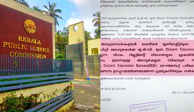 2025 സെപ്റ്റംബര് 25 ന് പിഎസ്സി പുറപ്പെടുവിച്ച ഉത്തരവാണ് ഔദ്യോഗിക വെബ്സൈറ്റിലൂടെയോ മാധ്യമങ്ങളിലൂടെയോ പുറത്തുവിടാതെ പൂഴ്ത്തി വച്ചത്. 2015 അധ്യയനവര്ഷം മുതല് ഭാരതിയാര് അടക്കമുള്ള യൂണിവേഴ്സിറ്റികളില് നിന്ന് വിദൂരവിദ്യാഭ്യാസം മുഖേന ഡിഗ്രി നേടിയവര്ക്ക് യുജിസിയുടെ ഡിസ്റ്റന്സ് എജുക്കേഷന് ബ്യൂറോയുടെ അംഗീകാരമുണ്ടാകില്ല. ഈ വിവരം റിക്രൂട്ട്മെന്റ് വിഭാഗങ്ങളുടെ ശ്രദ്ധയില്പ്പെടുത്താന് നിര്ദേശിച്ചായിരുന്നു പിഎസ്സിയുടെ ഉത്തരവ്.