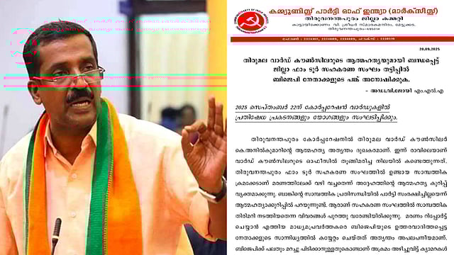 സഹകരണ സംഘത്തിലെ ക്രമക്കേടാണ് ആത്മഹത്യയിലേക്ക് നയിച്ചത് എന്ന് വ്യക്തമായെന്നും, സാമ്പത്തിക പ്രതിസന്ധിയിൽ ബിജെപി സഹായിച്ചില്ലെന്ന് ആത്മഹത്യാ കുറിപ്പിലുണ്ടെന്നും സിപിഐഎം പറഞ്ഞു. പലതും മറച്ചുവെക്കാനുള്ളതുകൊണ്ടാണ് ബിജെപി മാധ്യമപ്രവർത്തകരെ ആക്രമിച്ചതെന്നും സിപിഐഎം ചൂണ്ടിക്കാട്ടി.