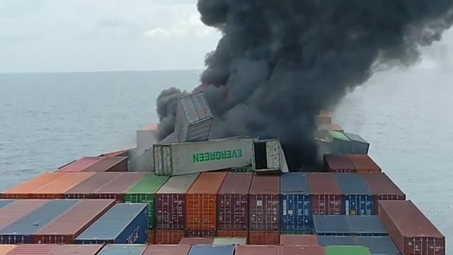 സിംഗപ്പൂർ കപ്പലായ വാൻ ഹായ് 503ലാണ് തീപിടിത്തം ഉണ്ടായത്. ഡെക്കിലുണ്ടായ പൊട്ടിത്തെറിയെ തുടർന്നാണ് തീ പടർന്നതെന്നാണ് നിഗമനം. കപ്പലിലുണ്ടായ 22 ജീവനക്കാരിൽ 18 പേരെ രക്ഷപ്പെടുത്തി. ബാക്കിയുള്ള നാല് പേർക്കായുള്ള ഇന്ത്യൻ നേവിയുടെയും കോസ്റ്റ് ഗാർഡിൻ്റെയും തെരച്ചിൽ പുരോഗമിക്കുകയാണ്. ചൈന മ്യാന്മാര്, ഇന്തോനേഷ്യ, തായ്ലൻഡ് പൗരന്മാരാണ് കപ്പലിൽ ഉണ്ടായിരുന്നത്.
