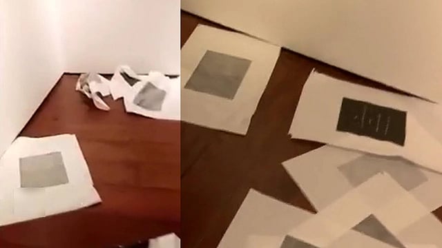 ഇന്നലെ വൈകിട്ട് ആറരയോടെയാണ് ഹനാൻ ബെനാമ്മറിന്റെ കലാസൃഷ്ടിയുടെ മലയാള പരിഭാഷ പോസ്റ്ററുകൾ കീറിയെറിഞ്ഞത്. കലാരംഗത്ത് പ്രവര്ത്തിക്കുന്ന ഹോചിമിനും, സുദാംശുവും ചേര്ന്ന് കലാസൃഷ്ടികൾ നശിപ്പിക്കുകയായിരുന്നു. കലാസൃഷ്ടികള് നശിപ്പിച്ചതിനെതിരെ വ്യാപക പ്രതിഷേധമാണ് ഉയരുന്നത്. നടന്നത് തനിക്ക് നേരെയുള്ള ആക്രമണം ആണെന്നും അക്കാദമിയുടെ തലപ്പത്ത് മുമ്പിരുന്നവരാണ് ഇതിന് പിന്നിലെന്നും ചെയർപേഴ്സൺ മുരളി ചീരത്ത് ന്യൂസ് മലയാളത്തോട് പറഞ്ഞു.