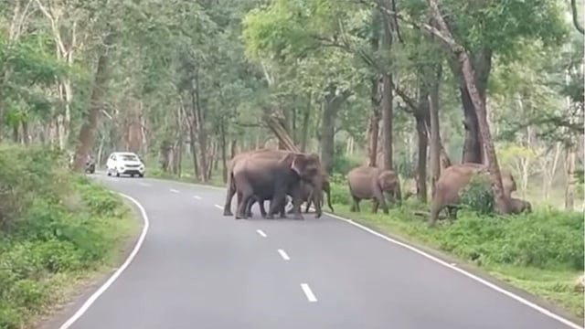 വേനൽ കടുത്തതോടെ കാട്ടാനക്കൂട്ടം ദേശീയപാതയിലേക്ക്; യാത്രക്കാർക്ക് മുന്നറിയിപ്പുമായി വനംവകുപ്പ്