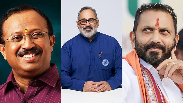 വി. മുരളീധരൻ, രാജീവ് ചന്ദ്രശേഖരൻ, കെ. സുരേന്ദ്രൻ Source; Facebook