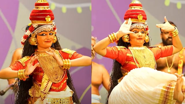 തൃശൂർ: കലയ്ക്ക് മതമില്ലെന്ന സത്യം ഊട്ടിയുറപ്പിച്ച് പാലക്കാട് കുമ്പിടി സ്വദേശിയായ അഞ്ജല. കഴിഞ്ഞ ദിവസം കലോത്സവ വേദിയിൽ നടന്ന നങ്ങ്യാർകൂത്ത് മത്സരത്തിലാണ് മുസ്ലീം വിഭാഗത്തിൽ പെട്ട അഞ്ജല മാറ്റുരച്ചത്. കലയ്ക്ക് മതമില്ലെന്നായിരുന്നു സംസ്ഥാന സ്കൂൾ കലോത്സവത്തിൻ്റെ ഉദ്ഘാടന വേദിയിൽ മുഖ്യമന്ത്രി പിണറായി വിജയൻ പറഞ്ഞത്. മുഖ്യമന്ത്രിയുടെ വാക്കുകൾ അക്ഷരാർഥത്തിൽ ശരിവയ്ക്കുന്ന കാഴ്ചയ്ക്കാണ് കലോത്സവവേദി സാക്ഷ്യം വഹിച്ചത്.