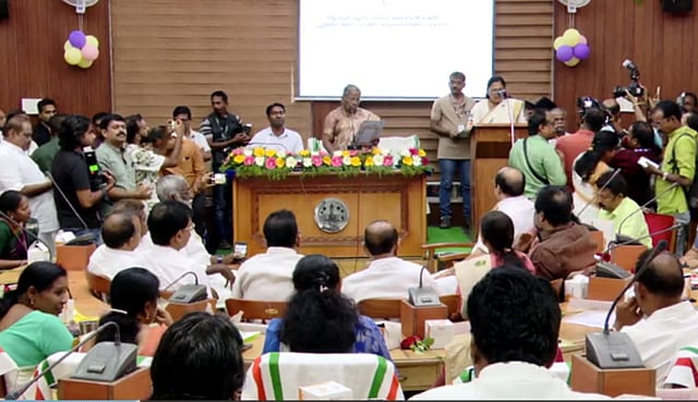 കണ്ണൂര് കോര്പ്പറേഷനില് മുതിര്ന്ന അംഗം ടിപി ജമാല് ആണ് ആദ്യം സത്യപ്രതിജ്ഞ ചെയ്തത്. തിരുവനന്തപുരത്ത് മുതിര്ന്ന അംഗം കെആര് ക്ലീറ്റസ് ആണ് ആദ്യം സത്യപ്രതിജ്ഞ ചെയ്തത്. പയ്യന്നൂര് നഗരസഭയിലെ എല്ഡിഎഫ് കൗണ്സിലര് വികെ നിഷാദ് സത്യപ്രതിജ്ഞ ചെയ്തില്ല. പൊലീസിനെ ആക്രമിച്ച കേസില് ജയിലിലായതിനാലാണ് സത്യപ്രതിജ്ഞ ചെയ്യാനാകാഞ്ഞത്. 46-ാം വാര്ഡ് മൊട്ടമ്മലില് നിന്നുള്ള അംഗമാണ്.