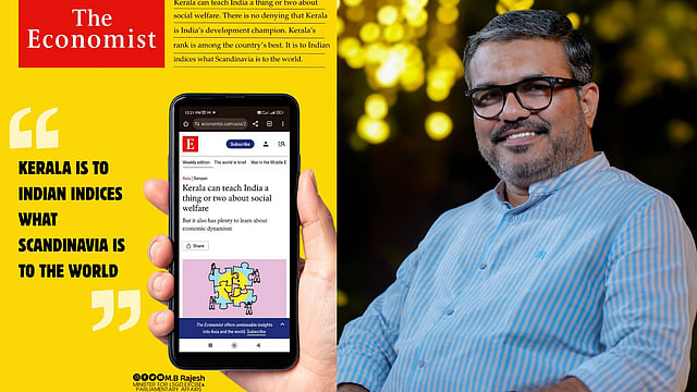'കണ്ണടച്ചിരുട്ടാക്കുന്നവരേ കാണൂ കേരളം ലോകത്തിന് വെളിച്ചമാകുന്നത്!' എന്ന തലക്കെട്ടോടെയാണ് എം.ബി. രാജേഷ് ഫേസ്ബുക്കിൽ കുറിപ്പ് പങ്കുവച്ചത്. വലതുപക്ഷ സാമ്പത്തിക വീക്ഷണങ്ങൾ ഉയർത്തിപ്പിടിക്കുന്നതുകൊണ്ട് തന്നെ 'ലോക മുതലാളിത്തത്തിന്റെ ജിഹ്വ' എന്ന് വിശേഷിപ്പിക്കപ്പെടുന്ന പ്രസിദ്ധീകരണമാണ് 'ദി എക്കണോമിസ്റ്റ്'.