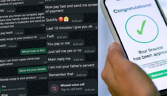 യുവതി ലോണ് ആപ്പിലൂടെ 2900 രൂപ എടുത്തിരുന്നു. ഈ പണം ഉടന് തിരിച്ചടയ്ക്കണമെന്നാണ് വാട്സ്ആപ്പിലൂടെ യുവതിക്ക് വന്ന സന്ദേശം. പണം ഉടന് നല്കിയില്ലെങ്കില് നഗ്ന ചിത്രം ബന്ധുക്കള്ക്കും സുഹൃത്തുക്കള്ക്കും അയച്ചുകൊടുക്കുമെന്നുമാണ് മെസേജ് വന്നത്.