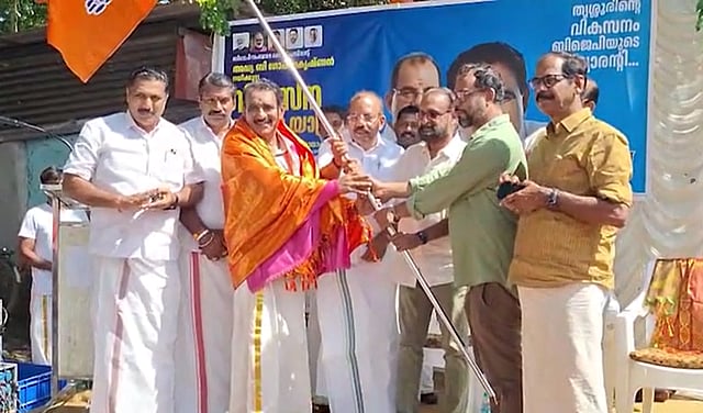തൃശൂർ: ബിജെപി സംസ്ഥാന വൈസ് പ്രസിഡന്റ് ബി. ഗോപാലകൃഷ്ണൻ നയിക്കുന്ന വികസന മുന്നേറ്റ യാത്രയിൽ പങ്കെടുത്ത് സംഗീത സംവിധായകൻ ഔസേപ്പച്ചൻ. തദ്ദേശ തെരഞ്ഞെടുപ്പിന് മുന്നോടിയായാണ് ബിജെപിയുടെ യാത്ര. ഔസേപ്പച്ചനൊപ്പം രാഷ്ട്രീയ നിരീക്ഷകൻ ഫക്രുദ്ദീന്‍ അലിയും വേദിയിലെത്തിയിരുന്നു. ഭാരതം നമ്മുടെ അമ്മയാണെന്നും നമ്മുടെ രാജ്യത്തിന് വേണ്ടി ഒറ്റക്കെട്ടായി പ്രവർത്തിക്കണമെന്നും ഔസേപ്പച്ചൻ പറഞ്ഞു.