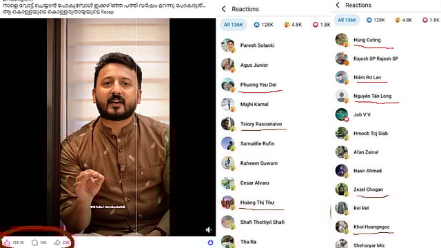 രാഹുലിൻ്റെ വീഡിയോ പോസ്റ്റുകളിൽ കമൻ്റ് ചെയ്തിരിക്കുന്നതിലും ലൈക്ക് ചെയ്തിരിക്കുന്നതിലും ആദ്യത്തെ കുറച്ച് ഭാഗം കഴിഞ്ഞാൽ പിന്നെ കുറേ ഫേക്ക് ഐഡികളാണ് എന്നാണ് ഇടത് അനുകൂലികളുടെ കണ്ടെത്തൽ.