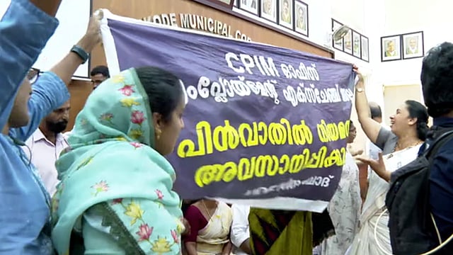 "ശുചീകരണ തൊഴിലാളികളെ നിയമിക്കുന്നതിൽ എന്താണ് സുതാര്യത കുറവ് എന്ന് പ്രതിപക്ഷ കൗൺസിലർമാർ തന്നെ വ്യക്തമാക്കണം. അത് വിശദീകരിക്കാൻ അവർക്ക് സാധിക്കുന്നില്ല. രണ്ട് ഘട്ടങ്ങളിലായാണ് നിയമനം നടന്നിരിക്കുന്നത്. നിയമനം നടത്തിയ സമയത്ത് പ്രതിപക്ഷം പ്രതിഷേധിച്ചിട്ടില്ല. അവരെ സ്ഥിരപ്പെടുത്തുമ്പോഴും വിയോജനകുറിപ്പ് രേഖപ്പെടുത്തിയിട്ടില്ല", മുസാഫിർ അഹമ്മദ്.