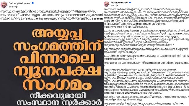 അതൊന്നുമല്ല, സർക്കാർ അവശ ജനവിഭാഗങ്ങളേയും പിന്നാക്ക ന്യൂനപക്ഷങ്ങളേയും പ്രത്യേകം പരിഗണിക്കുകയെന്ന സദുദ്ദേശത്തോടെയാണോ ? എങ്കിൽ ന്യൂനപക്ഷ സംഗമം സംഘടിപ്പിക്കുമ്പോൾ കഴിഞ്ഞ ഒൻപത് വർഷം ന്യൂനപക്ഷങ്ങൾക്ക് വേണ്ടി ചെയ്ത പ്രവർത്തനങ്ങൾ വിശദീകരിക്കണം. ന്യൂനപക്ഷങ്ങൾ എല്ലാം നേടുന്നുവെന്ന വ്യാജ പ്രചാരണത്തിൻ്റെ നിജസ്ഥിതി ബോധ്യപ്പെടുത്താൻ സർക്കാർ ഈ സംഗമം ഉപയോഗിക്കണം. ഇക്കാര്യത്തിൽ നിരന്തരം വിദ്വേഷ പ്രചാരണം നടത്തുന്ന വെള്ളാപ്പള്ളിയെ കയറൂരി വിടുകയും അദ്ദേഹത്തെ സ്തുതിക്കുകയും ചെയ്യുമ്പോൾ സർക്കാറിൻ്റെ ന്യൂനപക്ഷത്തോടുള്ള കരുതൽ അവരെ ബോധ്യപ്പെടുത്തേണ്ടതുണ്ടല്ലൊ.