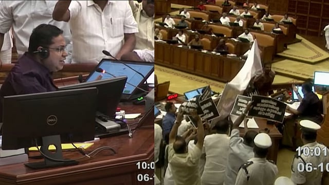 അതേസമയം എന്തിനാണ് സഭ തടസപ്പെടുത്തുന്നതെന്ന് സ്പീക്കര് പ്രതിപക്ഷത്തോട് ചോദിച്ചു. പ്രതിഷേധിക്കുന്നതിന്റെ ഗ്രൗണ്ട് എന്താണ്? പ്രശ്നം ഉണ്ടെങ്കില് എഴുതി തരണമെന്നും എന്തുകൊണ്ടാണ് അടിയന്തര പ്രമേയം നല്കാതിരുന്നതെന്നും സ്പീക്കര് പ്രതിപക്ഷ എംഎല്എമാരോട് ചോദിച്ചു.