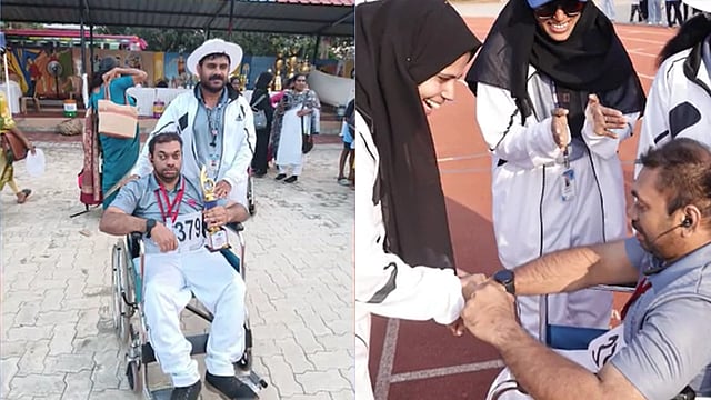 കണ്ണൂർ: കുടുംബശ്രീ സംസ്ഥാന മിഷന്റെ നേതൃത്വത്തിൽ ബഡ്സ് സ്കൂൾ വിദ്യാർഥികൾക്കായി കണ്ണൂരിൽ സംഘടിപ്പിക്കുന്ന കായികമേളയിൽ നിന്നുള്ള ഒരു സ്നേഹ കാഴ്ച കാണാം ഇനി . വീൽ ചെയർ റേസ് പൂർത്തിയാക്കിയ മലപ്പുറത്തു നിന്നുള്ള ആഷിക്കിന് അധ്യാപിക മുർഷിദ സ്വന്തം വാച്ച് ഊരി നൽകി. ശാരീരിക - മാനസിക വെല്ലുവിളികൾ നേരിടുന്നവരുടെ കായിക മികവാണ് മേളയിൽ മാറ്റുരയ്ക്കുന്നത്.