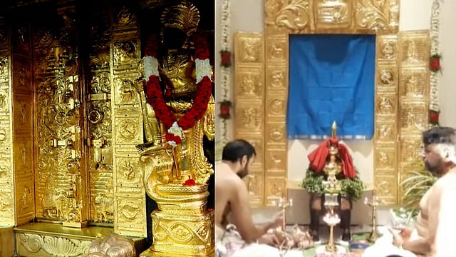 സന്നിധാനത്ത് നിലവിലുള്ളത് ജയറാം അടക്കം പൂജിച്ച ശ്രീകോവിൽ കവാടമാണ്. വിജയ് മല്യ നൽകിയ കവാടം ഇപ്പോൾ ദേവസ്വം ബോർഡിൻ്റെ സ്ട്രേങ് റൂമിലാണ് ഉള്ളത്. ഉണ്ണികൃഷ്ണൻ പോറ്റി നിർമിച്ച കവാടത്തിൽ ജയറാം അടക്കം പൂജ ചെയ്യുന്ന ദൃശ്യങ്ങൾ നേരത്തെ പുറത്തുവന്നിരുന്നു.