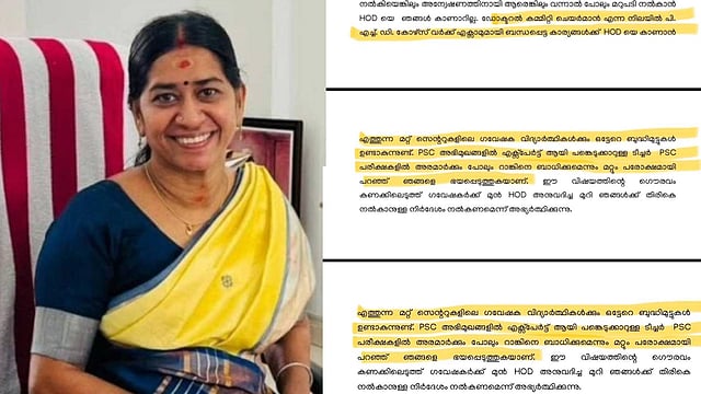 "ഡോക്ടറൽ കമ്മിറ്റി ചെയർമാൻ എന്ന നിലയിൽ പിഎച്ച്ഡി കോഴ്സ് വർക്ക് എക്സാമുമായി ബന്ധപ്പെട്ട കാര്യങ്ങൾക്ക് എച്ച്ഒഡിയെ കാണാൻ എത്തുന്ന മറ്റ് സെന്ററുകളിലെ ഗവേഷക വിദ്യാർഥികൾക്കും ഒട്ടേറെ ബുദ്ധിമുട്ടുകൾ ഉണ്ടാകുന്നുണ്ട്. പിഎസ്സി അഭിമുഖങ്ങളിൽ എക്സ്പേർട്ട് ആയി പങ്കെടുക്കാറുള്ള ടീച്ചർ - പിഎസ്സി പരീക്ഷകളിൽ അരമാർക്കും പോലും റാങ്കിനെ ബാധിക്കുമെന്നും മറ്റും പരോക്ഷമായി പറഞ്ഞ് ഞങ്ങളെ ഭയപ്പെടുത്തുകയാണ്. ഈ വിഷയത്തിന്റെ ഗൗരവം കണക്കിലെടുത്ത് ഗവേഷകർക്ക് മുൻ എച്ച്ഒഡി അനുവദിച്ച മുറി ഞങ്ങൾക്ക് തിരികെ നൽകാനുള്ള നിർദേശം നൽകണമെന്ന് അഭ്യർത്ഥിക്കുന്നു", പരാതിയിൽ പറയുന്നത് ഇങ്ങനെ.
