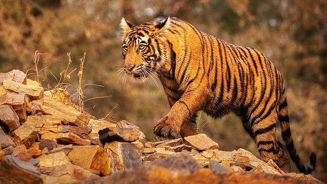 പുൽപ്പള്ളി- കർണാടക അതിർത്തിയോട് ചേർന്ന് ബന്ദിപ്പൂർ വനമേഖലയിൽ കഴിഞ്ഞ ദിവസം കണ്ട കടുവയുടെ ചിത്രം പുറത്തുവന്നു. ഇന്നലെ മാടപ്പളളിക്കുന്ന് ഉന്നതിക്ക് സമീപം ഇറങ്ങിയ പരിക്കേറ്റ കടുവയാണ് ഇതെന്നാണ് സംശയം. എന്നാൽ ചെത്തിമറ്റത്ത് മാരനെ ആക്രമിച്ച് കൊന്ന കടുവയുമായി ഇതിന് സാമ്യമില്ലെന്നാണ് വനം വകുപ്പ് നൽകുന്ന സൂചന. ഇതോടെ ഒന്നിലധികം കടുവകൾ കാടിറങ്ങിയെന്ന സംശയം ബലപ്പെടുകയാണ്. പുൽപള്ളി ടൗണിനു സമീപം എരിയപ്പള്ളിയിൽ ഇന്നും പുലർച്ചെയും നാട്ടുകാർ കടുവയെ കണ്ടു.