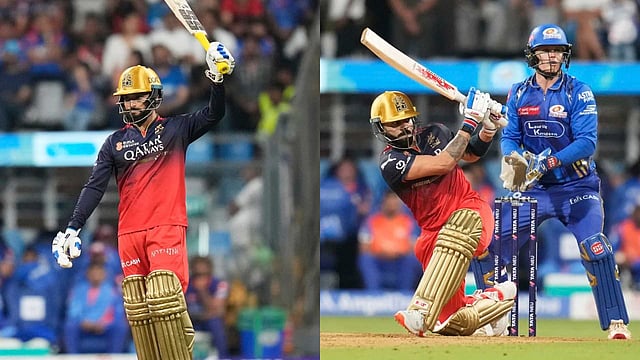 ഐപിഎല്ലിലെ 20-ാം മത്സരത്തിൽ മുംബൈ ഇന്ത്യൻസിനെതിരെ വമ്പൻ സ്കോർ പടുത്തുയർത്തി റോയൽ ചലഞ്ചേഴ്സ് ബെംഗളൂരു. 222 റൺസിന്റെ വിജയലക്ഷ്യമാണ് ഹാർദിക് പാണ്ഡ്യക്കും സംഘത്തിനും മുന്നിലുള്ളത്. വിരാട് കോഹ്ലി (67), രജത് പാട്ടീദാർ (64), എന്നിവരുടെ അർധ സെഞ്ചുറിയുടെ പിൻബലത്തിലാണ് ബെംഗളൂരു നിശ്ചിത ഓവറിൽ അഞ്ച് വിക്കറ്റ് നഷ്ത്തിൽ 221 റൺസ് നേടിയത്.