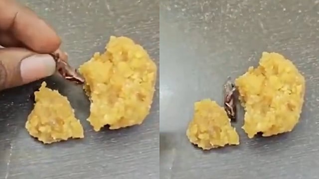 പ്രസാദമായി ലഭിച്ച ലഡുവിൽ പാറ്റ; ആന്ധ്രയിലെ ക്ഷേത്രത്തിൽ നിന്നുള്ള വീഡിയോ പങ്കുവെച്ച് ഭക്തൻ!