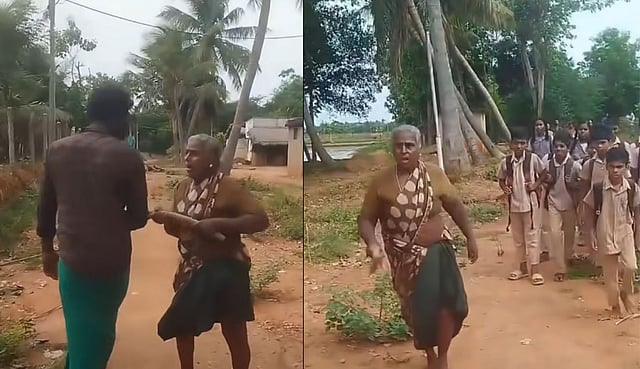 തമിഴ്നാട്ടിലെ തഞ്ചാവൂരില് കൊല്ലങ്കാരൈ ഗ്രാമത്തില് ദളിത് വിദ്യാര്ഥികളെ പൊതു വഴിയിലൂടെ സ്കൂളിലേക്ക് പോകുന്നതിനെതിരെ രംഗത്തെത്തിയ സ്ത്രീയുടെ വീഡിയോ സോഷ്യല് മീഡിയയില് ചര്ച്ചയാകുന്നു. മണ്പാതയിലൂടെ സ്കൂളിലേക്ക് പോകുന്ന കുട്ടികളെ ഒരു യുവാവാണ് നയിക്കുന്നത്. എന്നാല് ഇതിനെതിരെ മധ്യവയസ്കയായ സ്ത്രീ വടിയുമായി എത്തുന്നതും യുവാവ് അവരെ തട്ടിമാറ്റി കുട്ടികളോട് സ്കൂളിലേക്ക് പോകാന് ആവശ്യപ്പെടുന്നതുമാണ് വീഡിയോയില്.