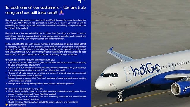 വിമാനത്താവളങ്ങളിൽ ഭക്ഷണവും ലഘുഭക്ഷണവും ഒരുക്കുന്നതിനൊപ്പം യാത്രക്കാരുടെ അസൗകര്യം ലഘൂകരിക്കുന്നതിനായി ആയിരക്കണക്കിന് ഹോട്ടൽ മുറികളും മറ്റ് ഗതാഗത ഓപ്ഷനുകളും ക്രമീകരിച്ചിട്ടുള്ളതായും എക്സിൽ പങ്കുവെച്ച പോസ്റ്റിൽ എയർലൈൻ വ്യക്തമാക്കി. കൂടാതെ, സാധ്യമാകുന്നിടത്തെല്ലാം മുതിർന്ന പൗരന്മാർക്ക് ലോഞ്ച് ആക്സസ് നൽകുന്നുണ്ടെന്ന് ഇൻഡിഗോ അറിയിച്ചു.