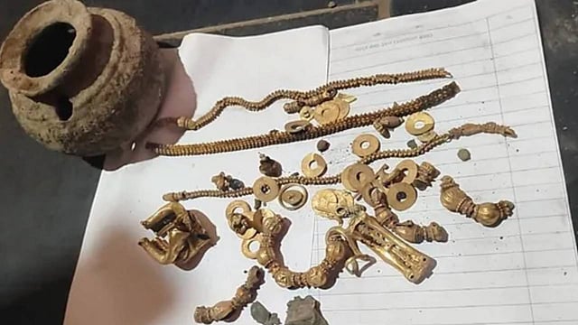 വളകള്, കമ്മലുകള്, ചെറിയ ലോക്കറ്റുകള് എന്നിവയാണ് ചെമ്പ് കുടത്തില് നിന്ന് ലഭിച്ചത്. പദേശത്ത് പോലീസ് കാവല് ഏര്പ്പെടുത്തിയിട്ടുണ്ട്.