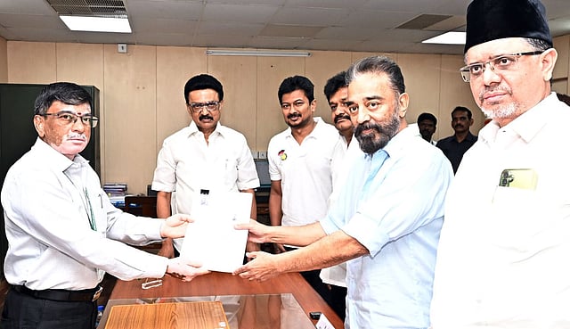കമൽ ഹാസൻ നാമനിർദേശ പത്രിക സമർപ്പിക്കുന്നു  Source: Makkal Needhi Maiam/ X