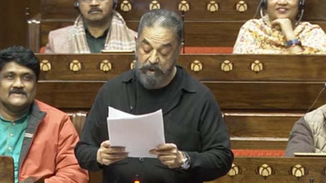 ഡൽഹി: കേന്ദ്ര സർക്കാരിനെ വിമർശിച്ച് നടനും എംപിയുമായ കമൽ ഹാസൻ്റെ രാജ്യസഭയിലെ കന്നി പ്രസംഗം. എസ്ഐആറിൽ പേര് വെട്ടുന്നതിനെ വിമർശിച്ച കമൽ ഹാസൻ ഗാന്ധി എന്നത് ഇന്ത്യ ഒരിക്കലും കൈവിടാൻ പാടില്ലാത്ത ആശയമെന്ന് കന്നി പ്രസംഗത്തിൽ പറഞ്ഞു. പരമക്കുടിയിലെ ഒരു സാധാരണ ബാലനെ പാർലമെൻ്റിൽ എത്തിച്ചത് സിനിമയെന്നും കമൽഹാസൻ പറഞ്ഞു. കമൽഹാസൻ്റെ പ്രസംഗത്തെ ഇൻഡ്യാ സഖ്യ പ്രതിനിധികൾ ഡെസ്കിലടിച്ച് സ്വാഗതം ചെയ്തു.